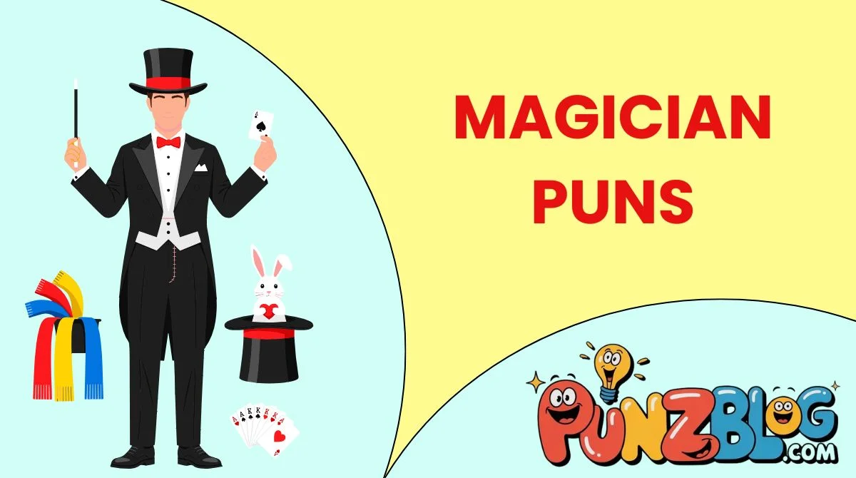 A good magician pun is short, clever, easy to say, and works with common magic words like wand, hat, deck, and rabbit.